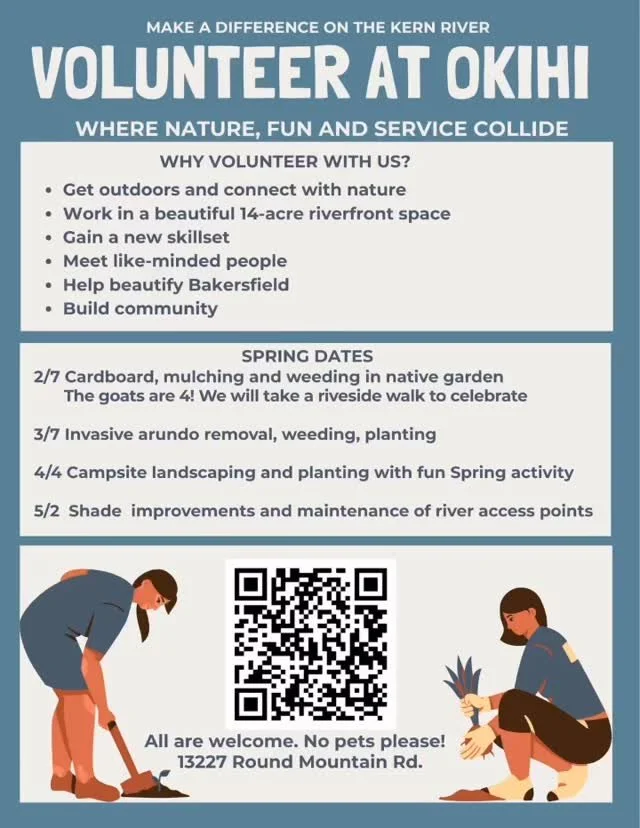 Okihi is a 14-acre riverfront restoration and outdoor education space along the Kern River in Bakersfield, California. Once an abandoned, fire-damaged property, it is now being transformed into a living ecological campus where people can reconnect with nature, community, and themselves.